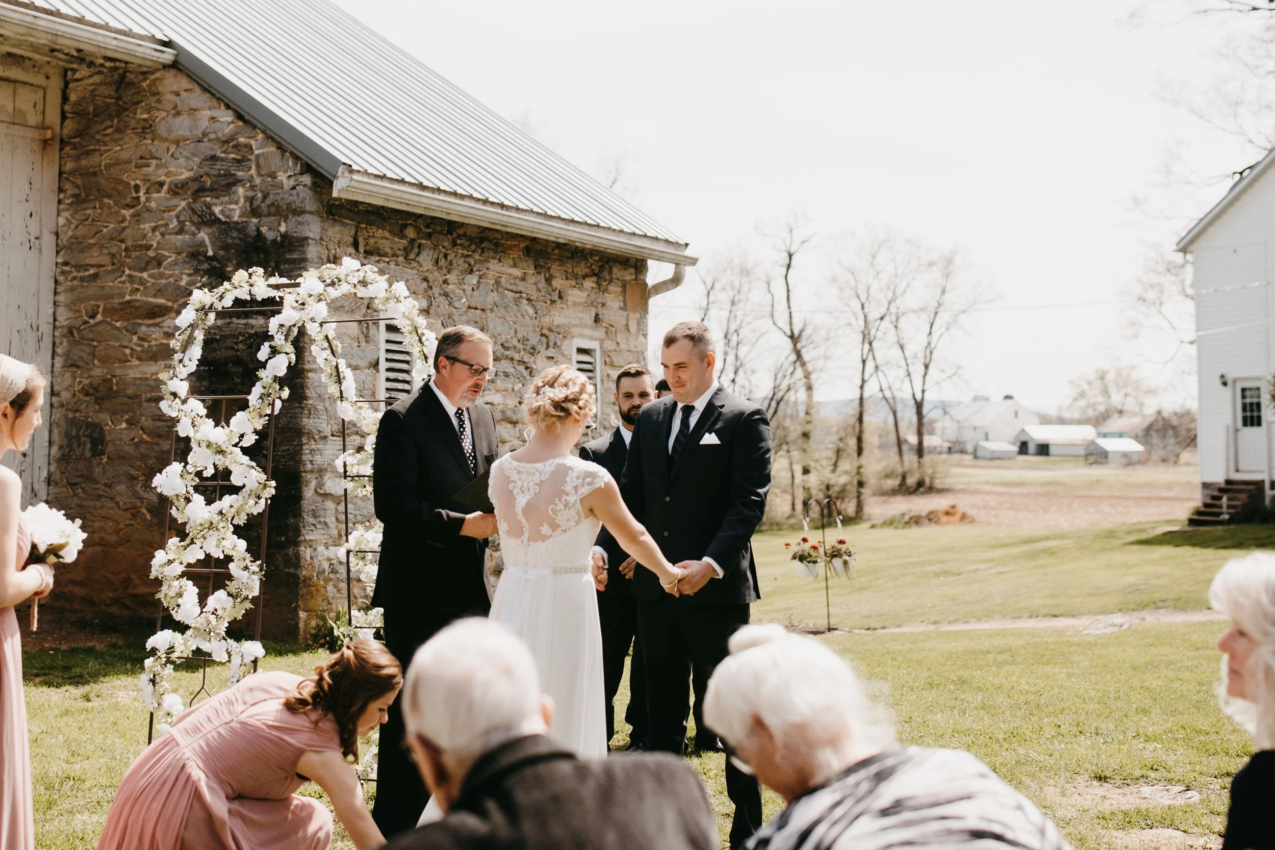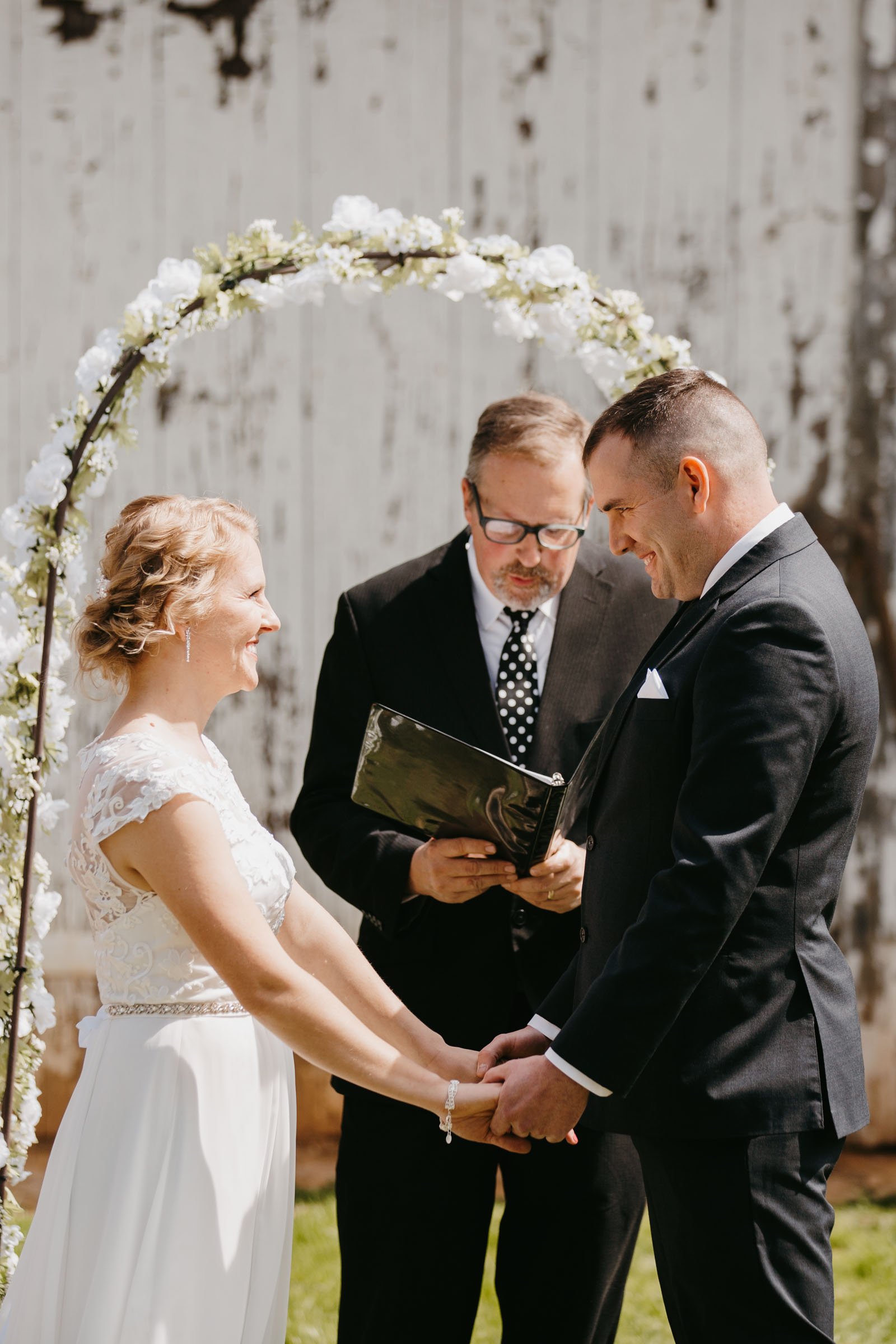 It was a beautiful day for a wedding! Erica & Kevin chose to get married on Erica’s family farm. It was a very relaxed atmosphere all day long. As I arrived, the family were sitting outside enjoying lunch on the patio. The dogs laid about and the kids were playing with their toy tractors as Erica was inside the farmhouse getting ready with her girls. The ceremony was out by the barn where their families and close friends gathered together. Smile after smile, Erica & Kevin came together and said their I do’s. Congratulations to Erica & Kevin! It was a joy spending your special day with you!